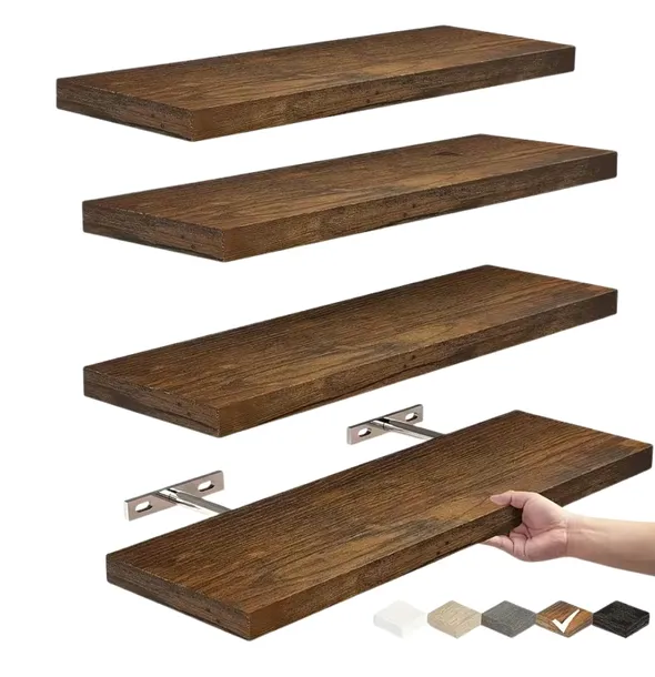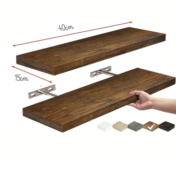 ZESTAW 4 DREWNIANYCH PÓŁEK WISZĄCYCH PŁYWAJĄCYCH DIKOM RETRO CIEMNY BRĄZ